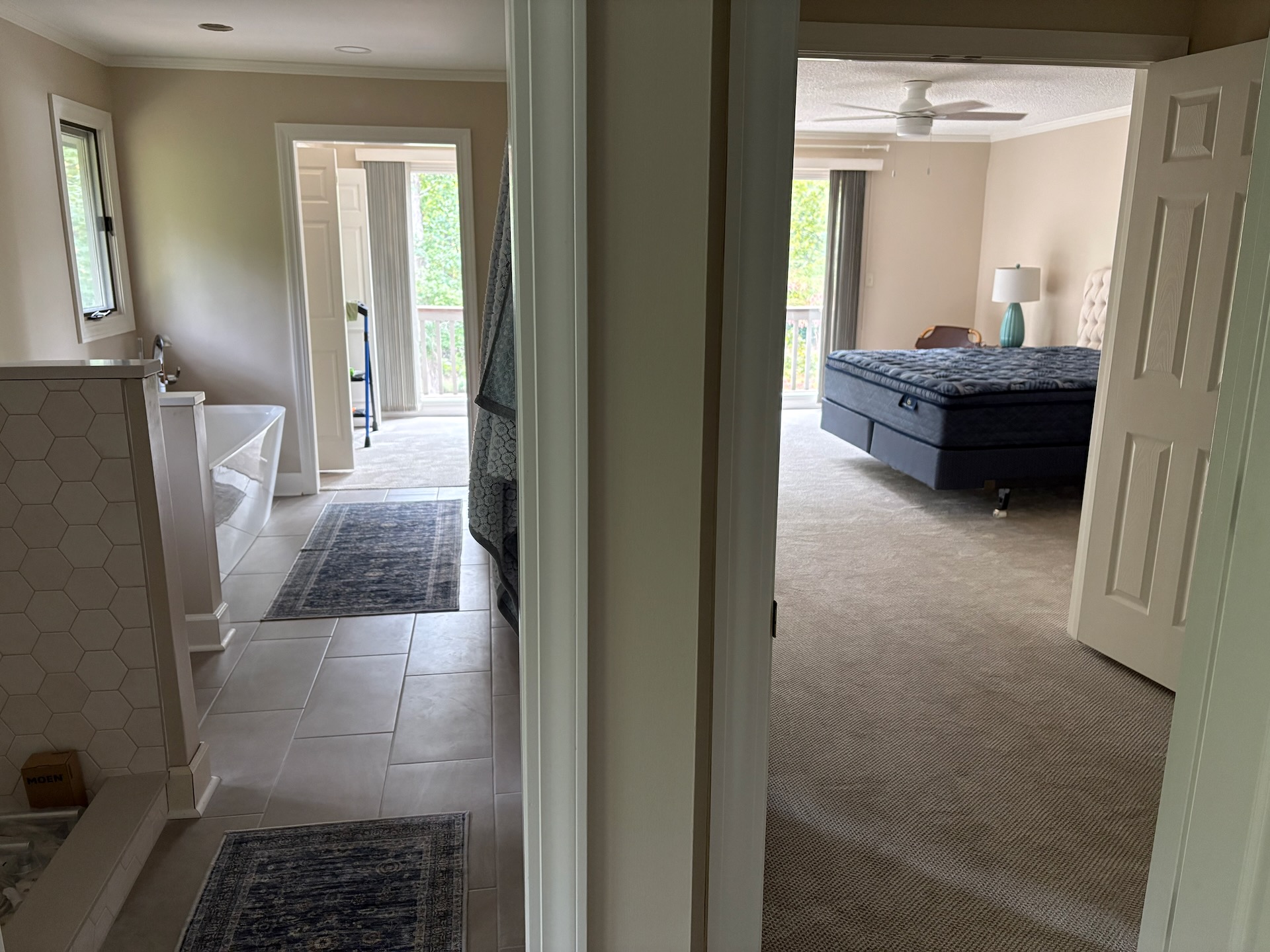 We’ve finished replacing our roof and remodeling1 a year after a tree hit our bedroom during Hurricane Helene2. We’ve been living downstairs in our guest bedroom for a little over a year. We called the guest bathroom shower ‘the coffin’ because it’s that tiny. Since we had to rip apart the ceiling of the master to repair the roof, it only made sense to move some walls and make some improvements while we were at it. It started with this mockup:
